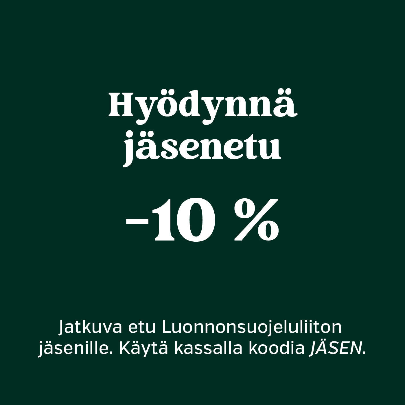 Jäsenetuna saat tuotteistamme 10% alennuksen. Edun hyödynnät käyttämällä kassalla etukoodia JÄSEN.