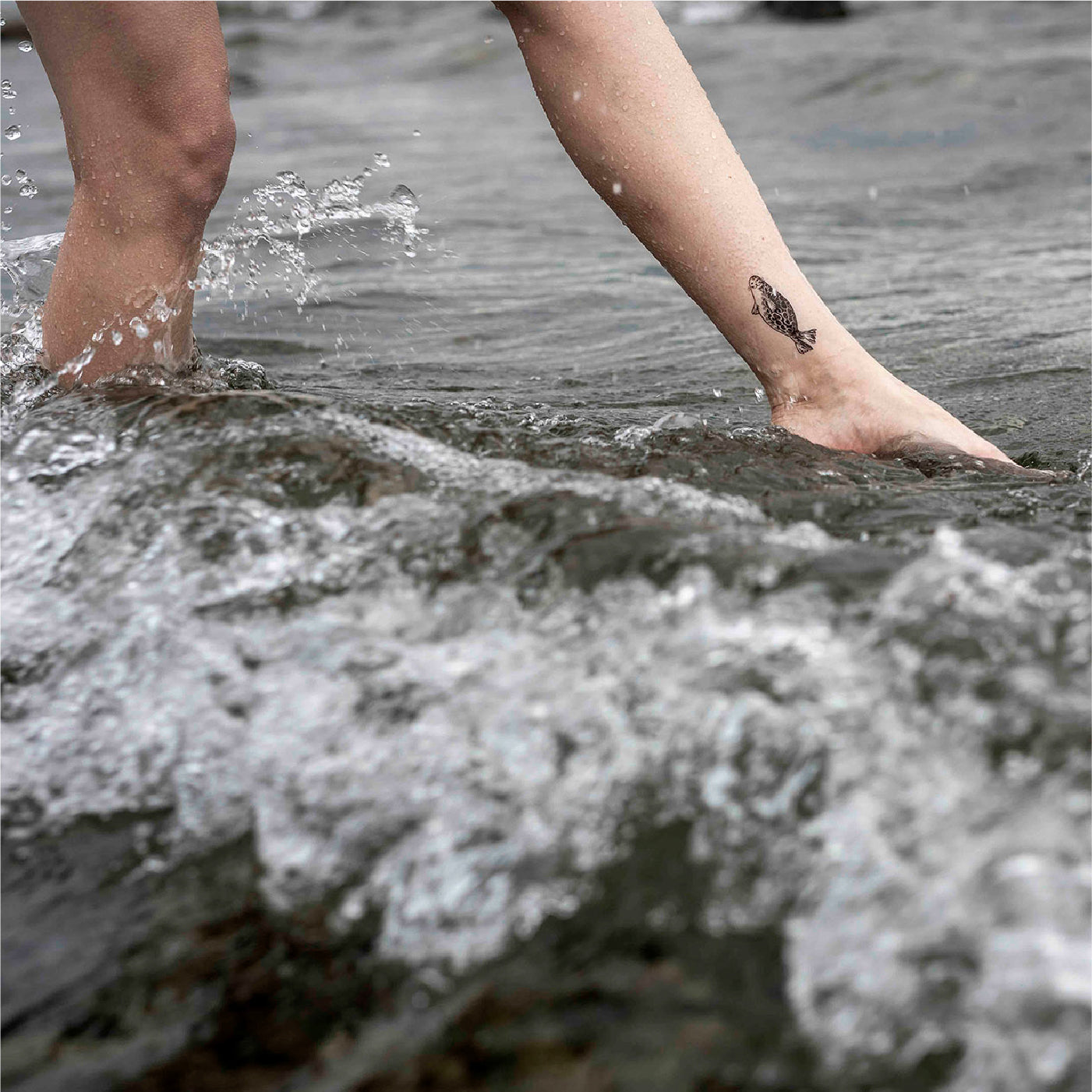 Uhanalainen kala ei yleensä päädy vaatemallistoon. Nyt päätyi. Suomen luonnonsuojeluliitto x Finsket -erikoismalliston Taimenet-kuosi sai alkunsa Kokkolan edustalla kuvatusta meritaimenesta. Malliston paidat valmistetaan Suomessa, Finsketin omassa ompelimossa.