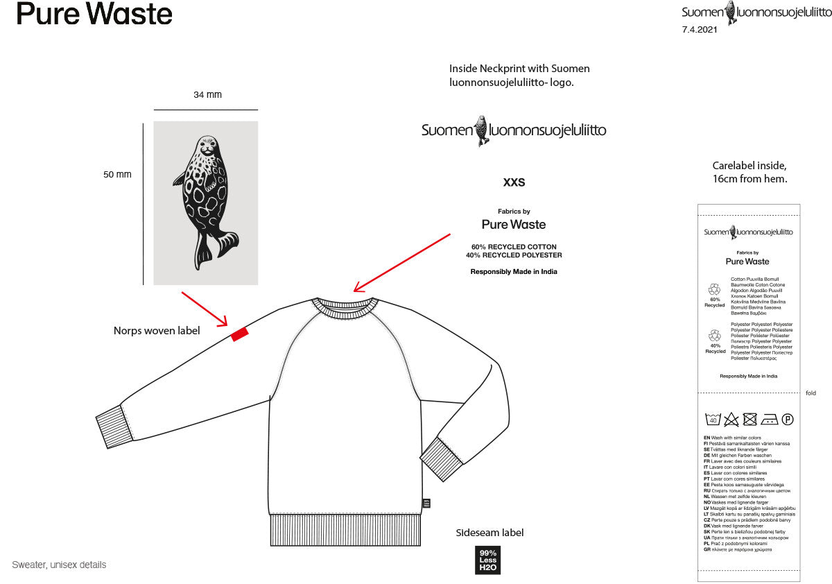 Malliston suunnittelu käynnistettiin vuoden 2021 alkupuolella yhteistyössä suomalaisen Pure Wasten kanssa. Pure Waste on tunnettu kierrätettyjen tekstiilien valmistajana ja yhteistyökumppanina meille tuttu jo aiemmista projekteista.