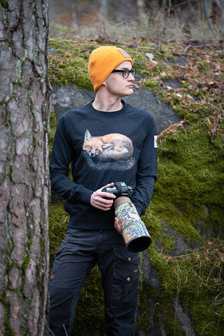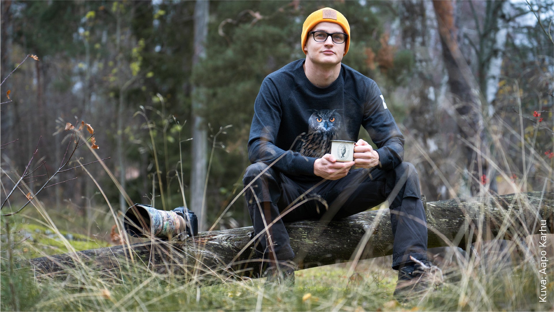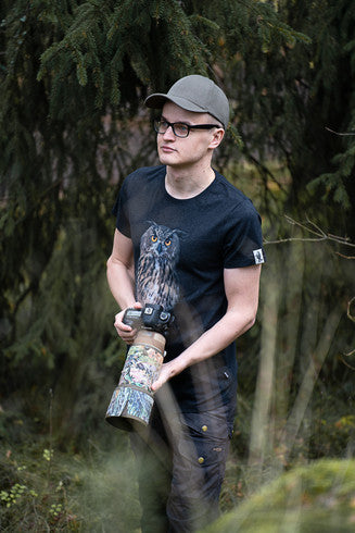 Luontosuhde on suomalaisille tärkeä ja moni haluaa tuoda sitä julki pukeutumalla eläinaiheisiin paitoihin. Erilaiset eläinaiheiset paidat ovat löytyneet Luontokaupan valikoimasta vuosikymmenten ajan. Tämän vuoksi halusimme saada malliston painatuksiin monipuolisuutta selvittämällä yhteistyöhalukkuutta tunnettujen suomalaisten luontovalokuvaajien kanssa. Yhteistyökumppaniksi valitsimme Instagramissa @soossseli -nimellä tunnetun Ossi Saarisen, joka innostuikin projektista heti. Pääsimme valitsemaan painatuksiin tulevat kuvat Ossin monipuolisesta kuvagalleriasta. Aiheiksi valikoituivat saimaannorppa, liito-orava, huuhkaja sekä kettu. Saimme vielä houkuteltua Ossin toimimaan itse kuvausmallina. Kuvaukset toteutettiin lokakuun lopulla Helsingin Seurasaaressa.