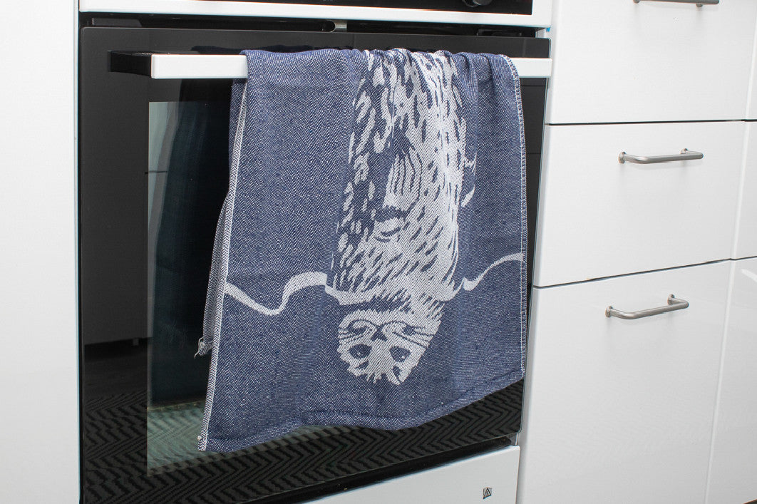 Kolmantena keittiötuotteena haluamme nostaa esille uusimman tulokkaan, viime vuonna valikoimiimme saapuneet Retrologo-keittiöpyyhkeet. Keittiöpyyhkeitä on saatavilla kahdessa värissä, maanläheisenä vihreänä sekä kauniin sinisävyisenä. Espanjassa valmistettuihin pyyhkeisiin on käytetty kokonaan kierrätettyä materiaalia, joka tuo tuotteisiin ainutlaatuisen pehmeän tunnun ja vaihtelevan pintastruktuurin.