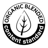 Organic Content Standard varmistaa luomupuuvillan alkuperän. Blended tarkoittaa, että puuvillaa on sekoitettu muihin kuituihin esimerkiksi materiaalin kestävyyden parantamiseksi.